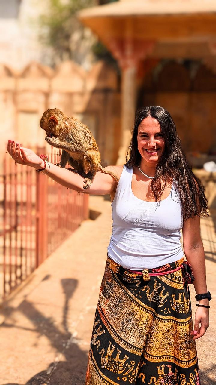 Por la tarde, nos dirigimos al Templo Galtaji, también conocido como Templo de los Monos, un lugar sagrado rodeado de colinas donde cientos de macacos residen, creando una atmósfera única y espiritual. Más tarde, visitamos el Templo Birla, una impresionante estructura de mármol blanco que, con su arquitectura moderna y serena, nos ofrece un espacio de paz y reflexión en medio del bullicio de la ciudad.